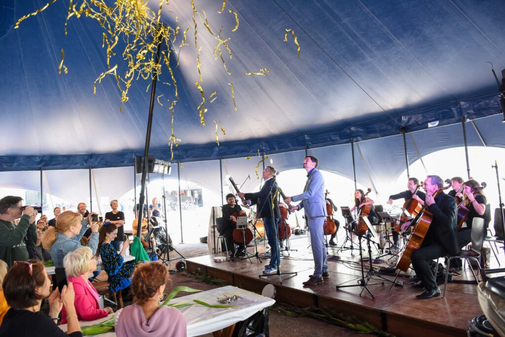 Mit der Einweihung des Brown-Boveri-Platzes als neuen Eventplatz verwandelte sich Baden Nord am Samstag, 30. August 2025, in eine lebendige Bühne für Kultur, Kulinarik und Begegnung. Stadtammann Markus Schneider und Stadtrat Benjamin Steiner würdigten in ihren Grussworten die Geschichte des Platzes und das grosse Engagement aller involvierten Stadtabteilungen und Partnerbüros. Mit einer Glitzerkanone und der musikalischen Umrahmung durch Chaarts Chamber Artists wurde der neue Eventplatz offiziell den künftigen Nutzerinnen und Nutzern übergeben.