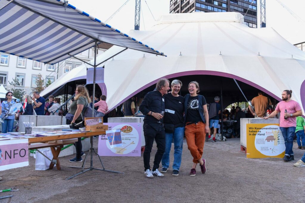 Geduldig wurde in der Schlange gewartet, um eines der 700 auf Kollektenbasis offerierten Menüs zu probieren – aufgrund der hohen Nachfrage waren es 200 Portionen mehr als ursprünglich geplant. Das freute auch die Mitglieder von Kulturaktiv und der Reformierten Kirche sehr: Die Initiator:innen Susanne Slavicek, Nadine Tobler und Pfarrer Res Peter sind sich einig: «Dass sich mit dem Stadtpicknick-meets-Foodsave-Bankett so viele Menschen auf dem neuen Eventplatz zusammenfinden und Kultur erleben und den Foodsave-Gedanken weitertragen, ist einfach nur grossartig.»