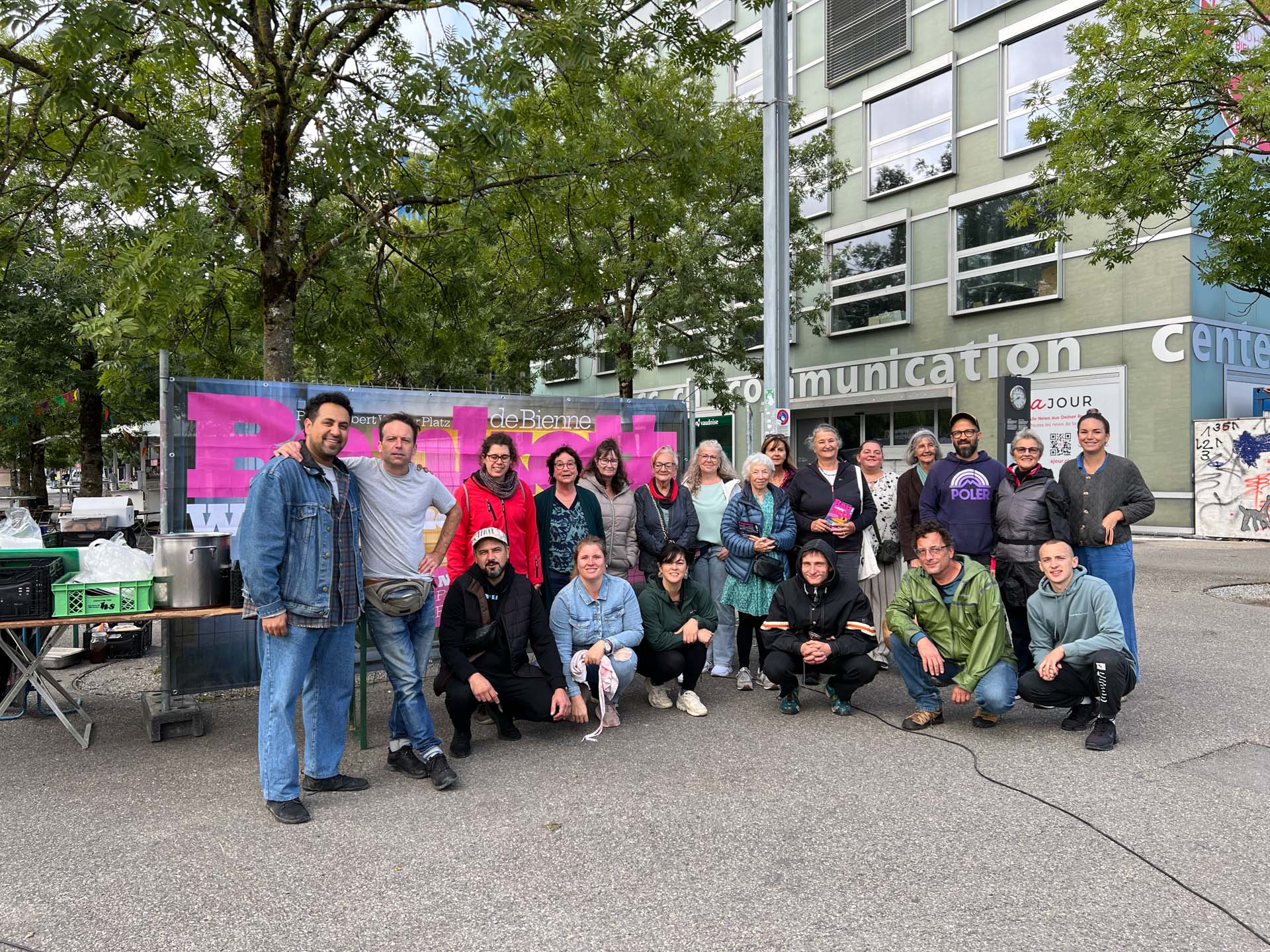 Die 3. Ausgabe des Bankett de Bienne war am 6. September bei prächtigem Wetter ein voller Erfolg: 250 Besucher*innen, über 50 Helfer*innen, eine grosse, schön dekorierte Tafel, gutes Essen aus mehrheitlich geretteten regionalen und biologischen Lebensmitteln und berührende Redebeiträge von zwei Armutsbetroffenen. «Für mich bedeutet dieses Bankett Hoffnung und Zusammenhalt. Ich möchte ein Teil davon sein, weil ich selbst erfahren habe, wie wichtig Solidarität ist. Heute weiss ich: Wenn wir teilen, was wir haben – sei es Zeit, Kraft oder ein Stück Brot –, dann machen wir die Welt ein bisschen heller», erzählte beispielsweise die Ukrainerin Nadiia Serdiuk. Über die positive Medienberichterstattung gelangten ferner wichtige Anliegen des Anlasses wie Food Waste, Armut und die Transformation der städtischen Landwirtschaftsflächen an ein breites Publikum. Die Band «Gustavo Swingtett» sorgte für gute Stimmung und das philosophische Speedating in Regie des Portals philosophie.ch für vertiefte Gespräche zum Thema Ernährung und Armut.
