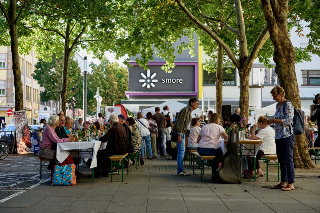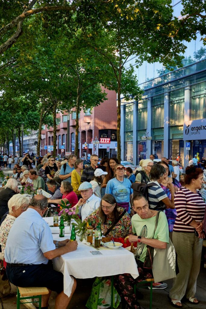 foodsave-bankette.ch ist das urbane Erntedankfest, initiiert von offene kirche bern, foodwaste.ch, Brot für alle, OGG Bern und findet seit 2016 in Städten und Dörfern in der ganzen Schweiz statt, um ein Zeichen gegen Food Waste zu setzen – und jetzt zum ersten Mal auch in Deutschland.